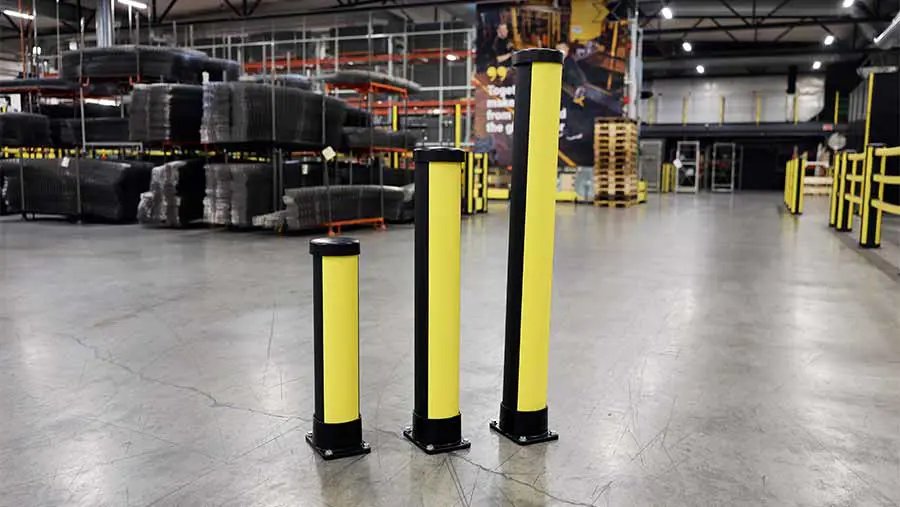 De X-Protect Essential bollards zijn daarentegen ontworpen voor lichte impactzones waar flexibiliteit en snelle installatie van cruciaal belang zijn. Ze bieden betrouwbare bescherming op grondniveau tegen onbedoeld contact met vorkheftrucks, AMR's of pallettrucks, terwijl de open indeling behouden blijft. De Essential-paaltjes zijn verkrijgbaar in vier maten, van 620 tot 1170 mm, en kunnen eenvoudig worden aangepast aan verschillende indelingen en verkeersomstandigheden.