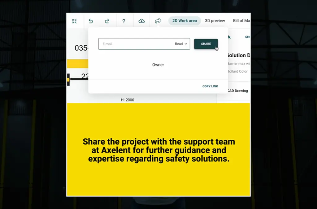 Op het gebied van veiligheidsoplossingen is samenwerking de sleutel tot het ontwikkelen van de meest efficiënte en effectieve systemen. De Safety Design tool van Axelent introduceert een revolutionaire functie voor delen, ontworpen om teamwerk te verbeteren en projectontwikkeling te stroomlijnen. Met deze functie kunt u uw projecten eenvoudig delen met collega's, partners en het Axelent Support team, zodat elk aspect van uw veiligheidsoplossing profiteert van de collectieve expertise en inzichten.