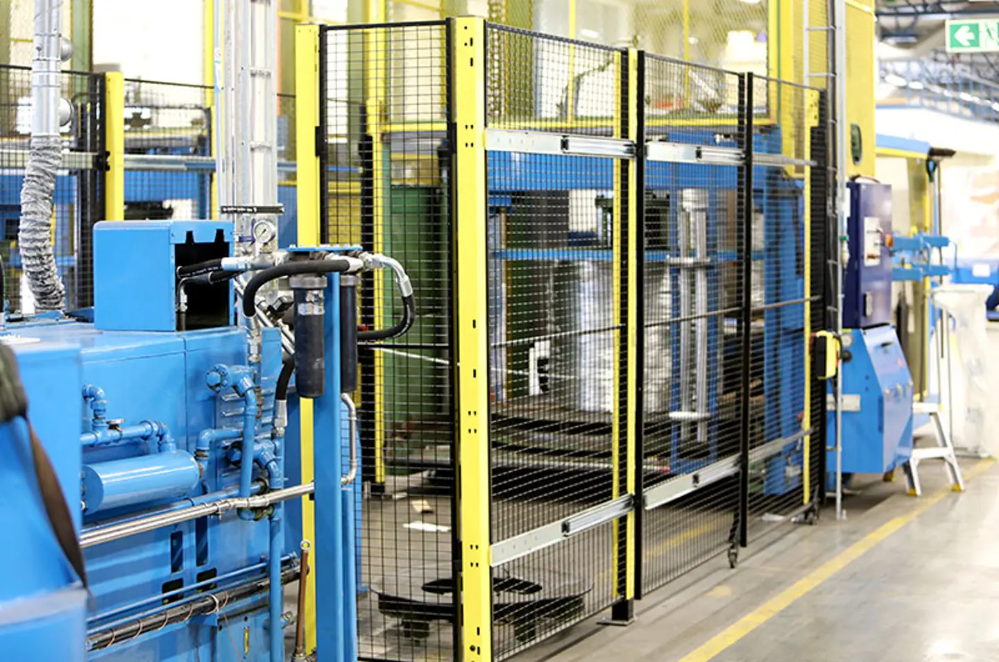 The factory has 130 machine lines ranging from one metre to 70 metres in length. There is an average of seven to eight machines on each line and some of the machines have parts that rotate at several thousand revs per minutes. The age of the machines varies greatly and a safety upgrade of the machine lines is underway with the addition of mesh panels and other machine guards.